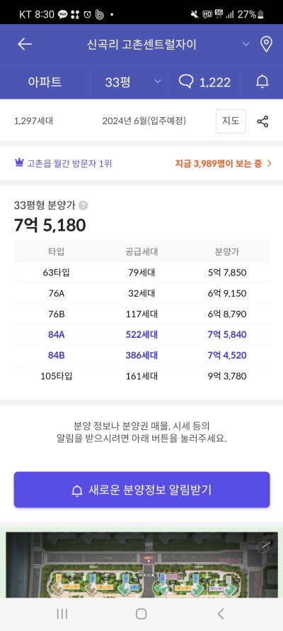 이번에 고촌센트럴자이의 미분양 재고를 살펴보면 다양한 조리대를 보실 수 있습니다. 이는 63, 76, 84, 105m2 유형의 총 1,297개 유닛 중 일부입니다. 가장 흔한 유형은 84번 유형으로 나타난다. A형 가구는 522가구, B형 가구는 386가구이다. 이는 전체의 거의 70%를 차지한다.