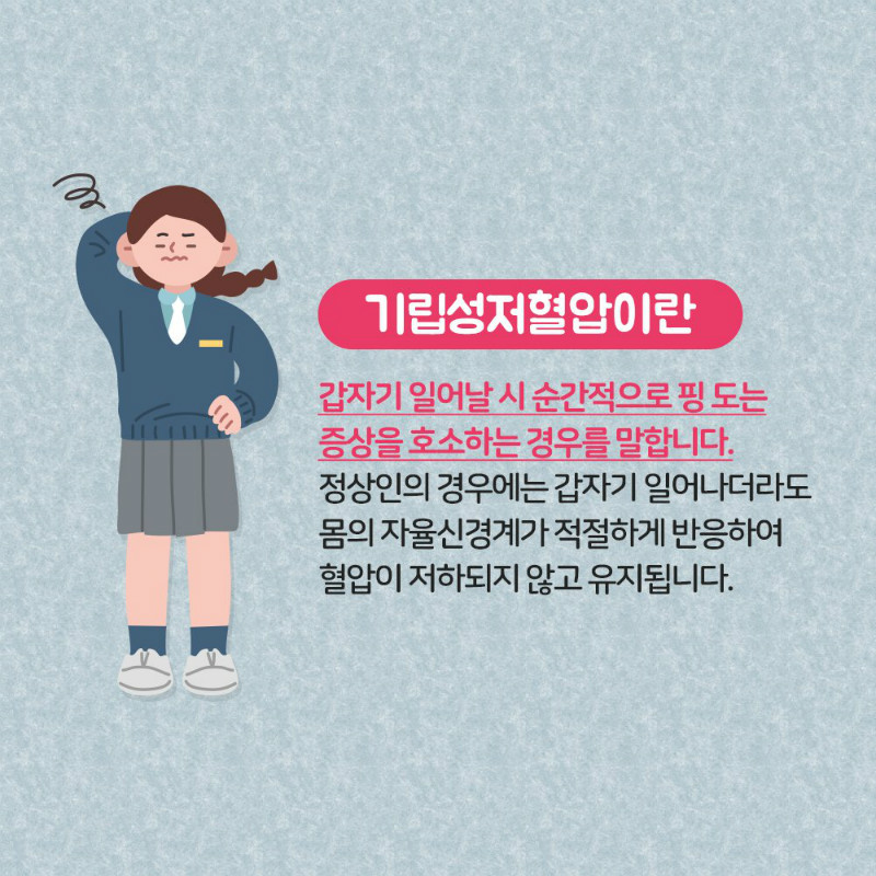 과거에는 혈압 조절 능력이 약한 65세 이상의 고령자에게 자주 발생하는 질환이었지만 요즘은 젊은층에서도 많이 발생한다. 이번 글에서는 기립성 저혈압의 증상과 원인, 치료법에 대해 알아보겠습니다. 기립성 저혈압이란 무엇입니까?