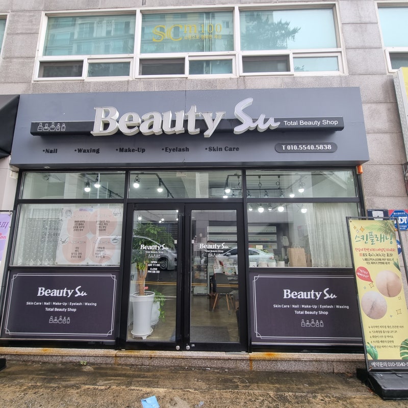 스킨케어부터 속눈썹 펌 연장, 왁싱, 스킨 플래닝, 네일아트까지 케어를 한 번에 받을 수 있는 토탈 뷰티샵입니다. 밖에서 볼 때는 뷰티샵 공간이 작아 보였지만, 안으로 들어가니 스킨케어 공간이 추가되어 생각보다 넓어졌습니다. 넓고 세련된 인테리어가 있어서 잘 꾸며놓은 것 같아요. 메인 오픈공간은 네일아트 공간으로 활용되며, 뒤쪽 공간은 스킨케어와 왁싱, 익스텐션을 위한 공간으로 분리되어 있습니다.