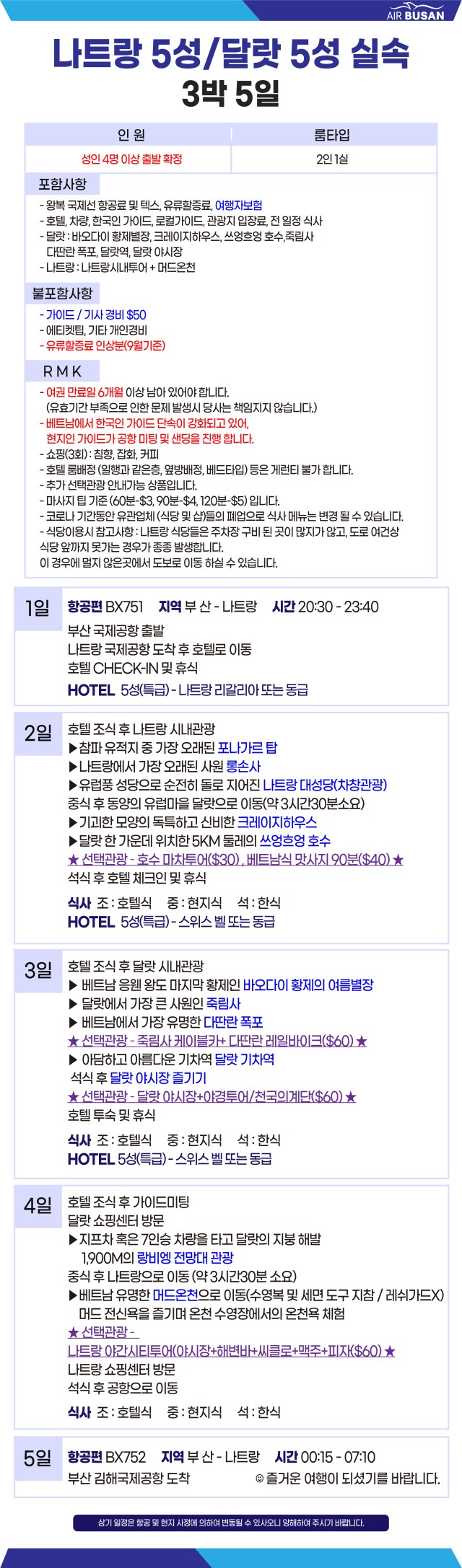 우선 부산과 나트랑을 여행 중이었는데 다행히 당시에 이용할 수 있는 스페셜 패키지가 있었어요. 친구들은 그냥 직접 찾으면 훨씬 저렴할 텐데, 내가 찾지 않고 표를 발부해 주면 그냥 편한 대로 하겠다고 하더군요. 그리고 비교해보니 가격차이도 나더군요. 솔직히 말해서 그렇게 크지는 않았습니다.